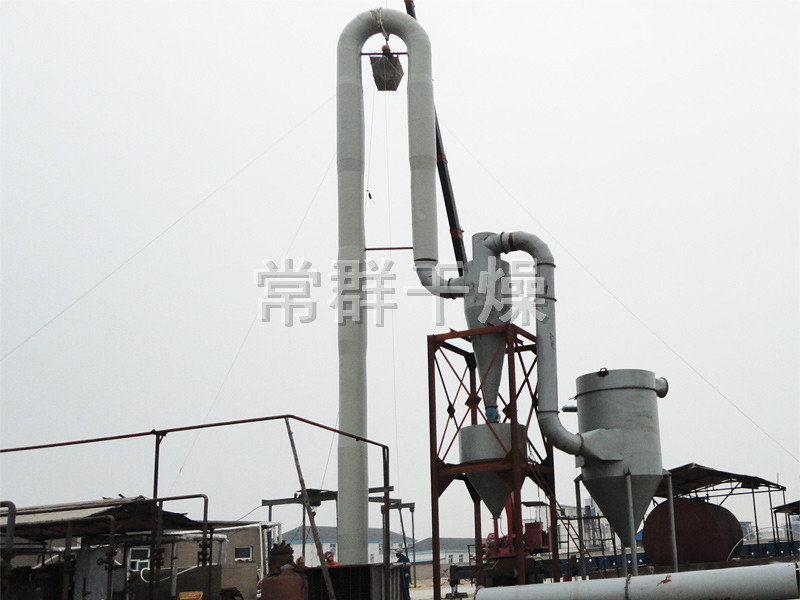 帶動濕物料,使?jié)裎锪蠎腋≡跓峥諝庵校@樣強化了整個干燥過程,提高了傳熱傳質(zhì)的速率,經(jīng)過氣流干燥的物料,非結(jié)合水分幾乎可以全部除去(例如:淀粉等物料進料含水量≤40%左右,成品出料可為13.5%), 并且所干燥的物料,不會產(chǎn)生變質(zhì)現(xiàn)象,產(chǎn)量可比一般干燥機干燥有顯著提高,用戶可在短期內(nèi)取得較高的經(jīng)濟效益。