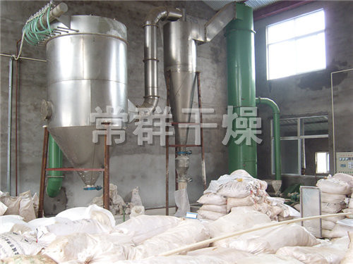 ??經(jīng)換熱器加熱后的潔凈空氣被鼓入進(jìn)風(fēng)口,以適合的速度旋入干燥室底部的環(huán)隙,然后按切線方向進(jìn)入干燥室,并呈螺旋狀上升:一同,物料則由可無級調(diào)速的加料器定量加入塔內(nèi)。在干燥塔內(nèi),物料與熱空氣進(jìn)行充分、高效的質(zhì)熱改換,被干燥的粉狀物料伴隨熱風(fēng)一同輸送至分離器,其中成品收集包裝,而尾氣則進(jìn)一步經(jīng)除塵設(shè)備處理后排空。